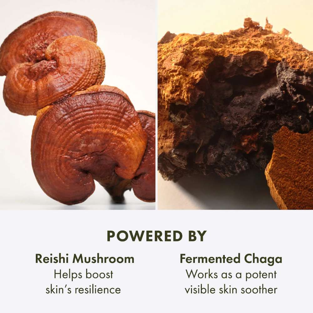 - Reishi & Fermented Chaga Mushrooms – Soothe irritation and reduce visible redness